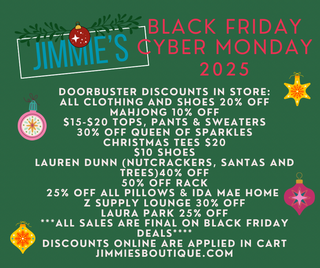 Jimmie's is an excellent, consistent store for cute, classic, and trendy items that are great quality! I find something every week that I "need!"