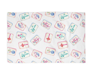 Preppy Navy Pink Chinoiserie Christmas Kitchen Towel