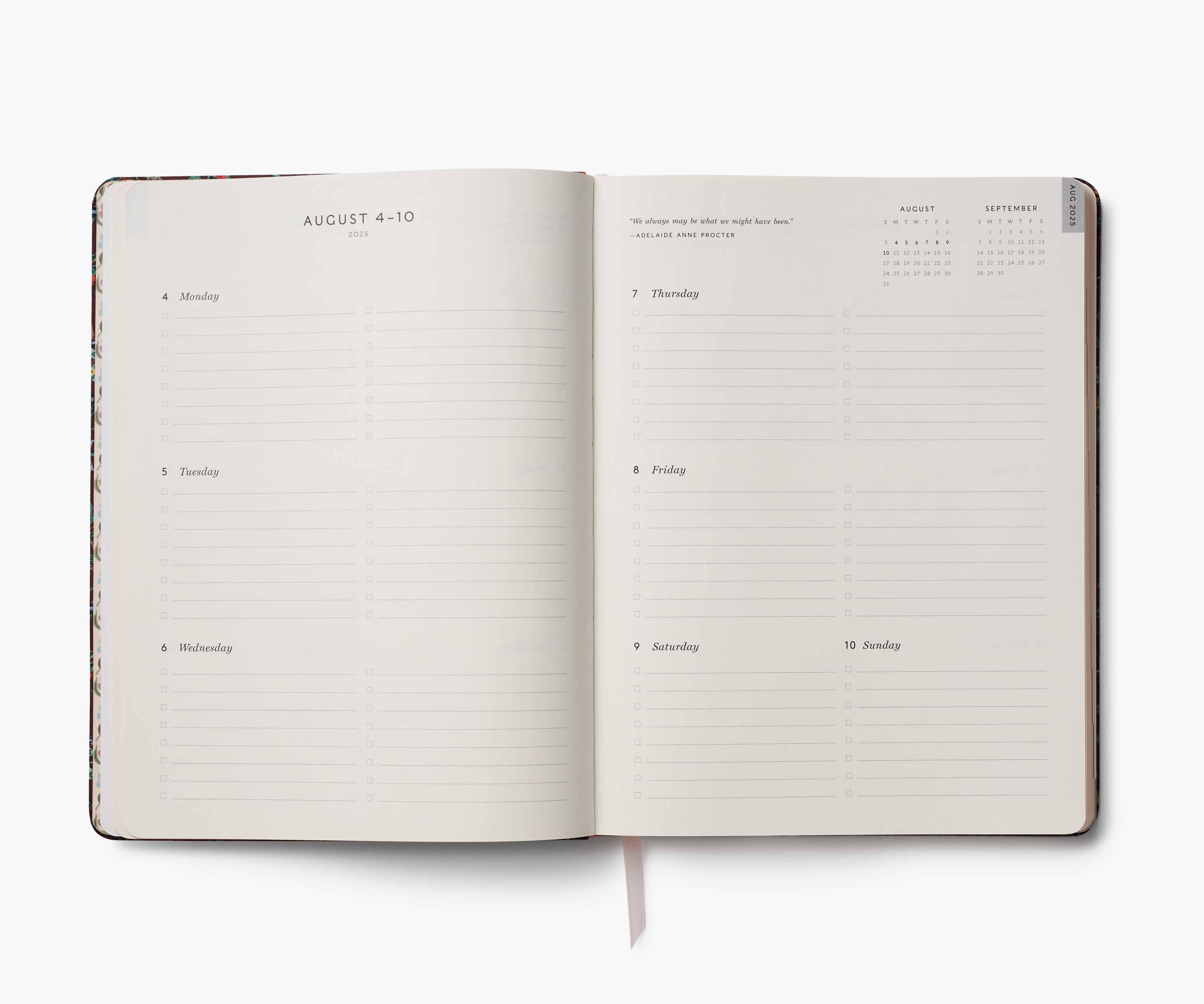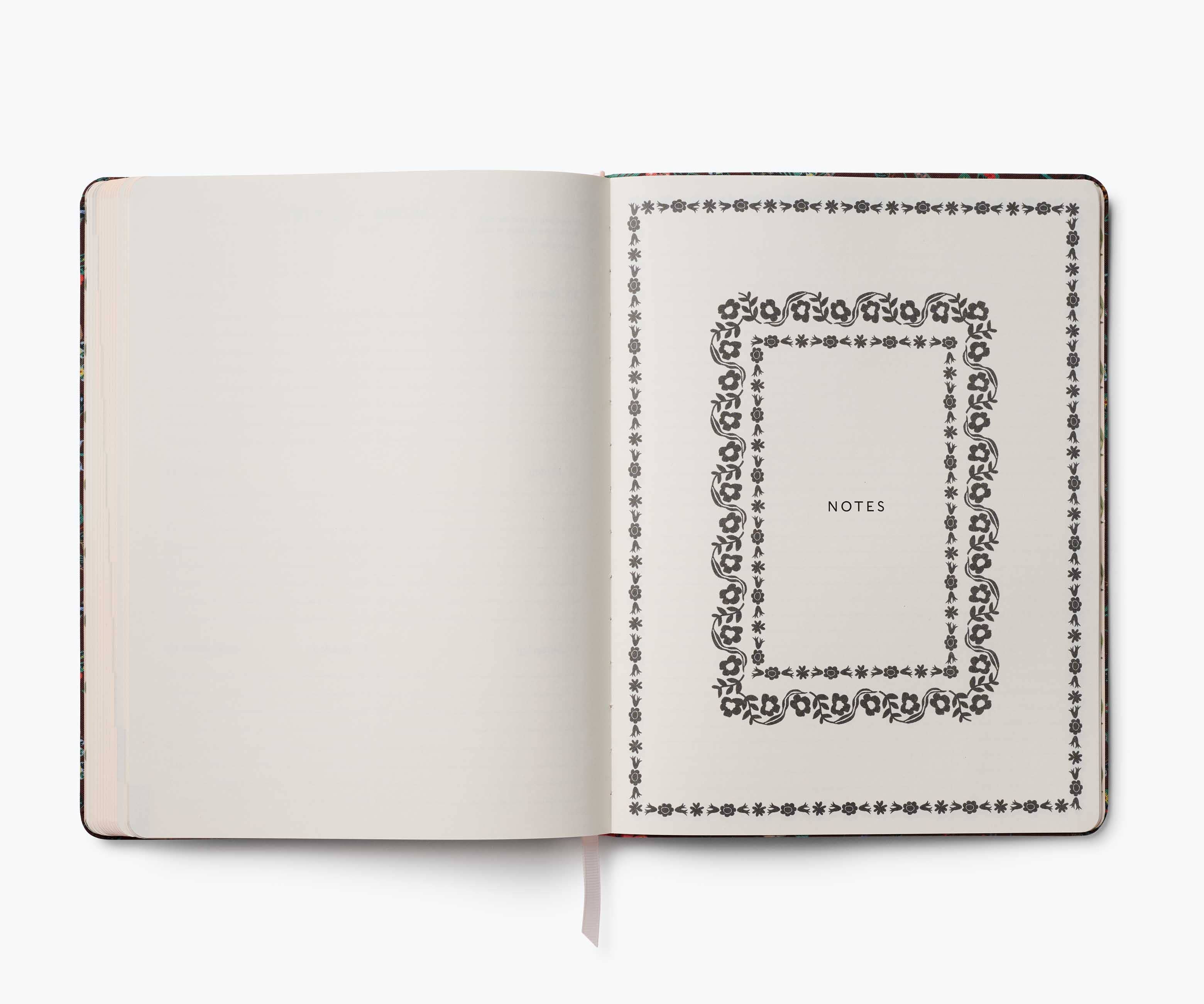 Spanning a full school year, this floral-printed planner features a bookbound cover, monthly and weekly views with space for notes and to-dos, and a list of celebrations. Planner spans August 2025 - July 2026.