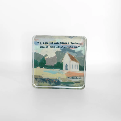 Our acrylic scripture blocks feature meaningful Bible verses paired with Lauren’s artwork, created as small reminders of encouragement and faith for everyday life. Each block is printed on acrylic, cut to shape, and designed to stand on its own — easy to display on a desk, shelf, or bedside table.