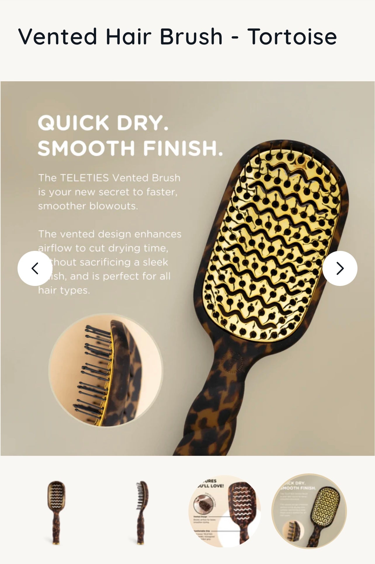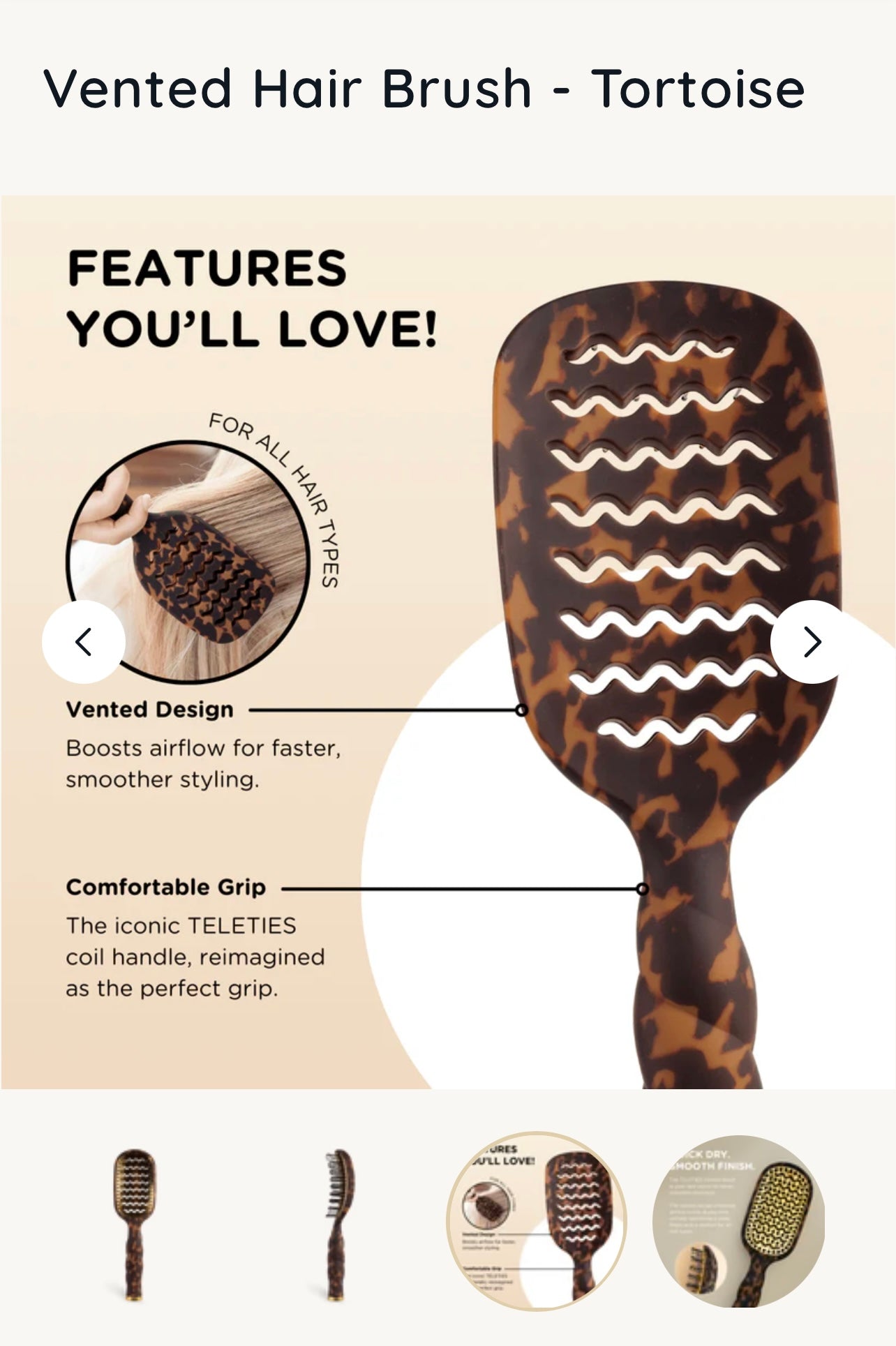 The Vented Brush in Tortoise is your new secret to faster, smoother blowouts. Pairing a Quick-Heat Aluminum Plate that heats up in seconds and distributes heat evenly with a vented design to enhance air flow, this vent brush works perfectly with your blow dryer to cut down on styling time without cutting corners on results.