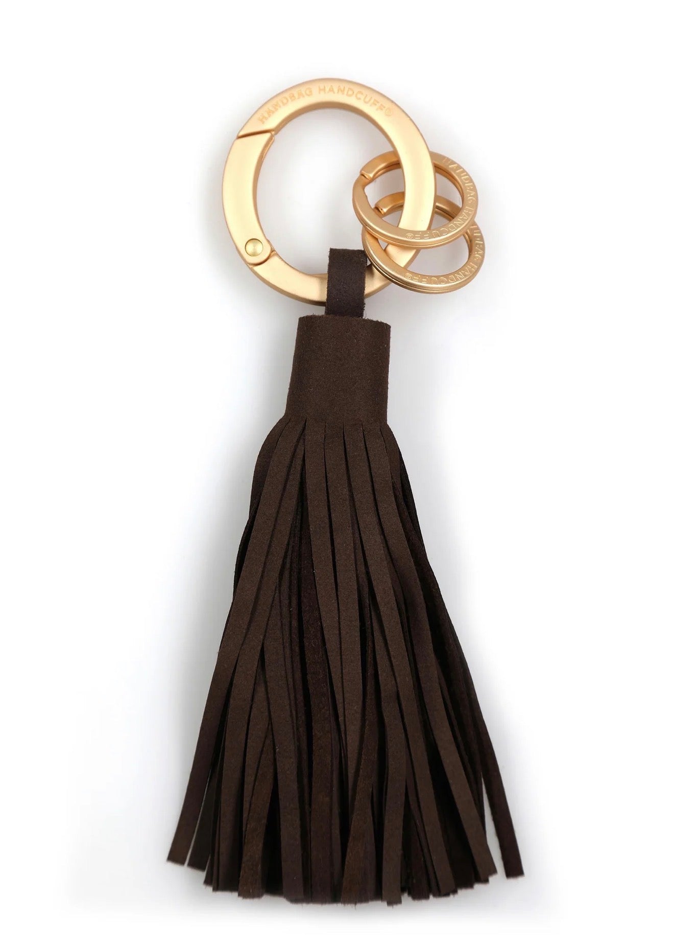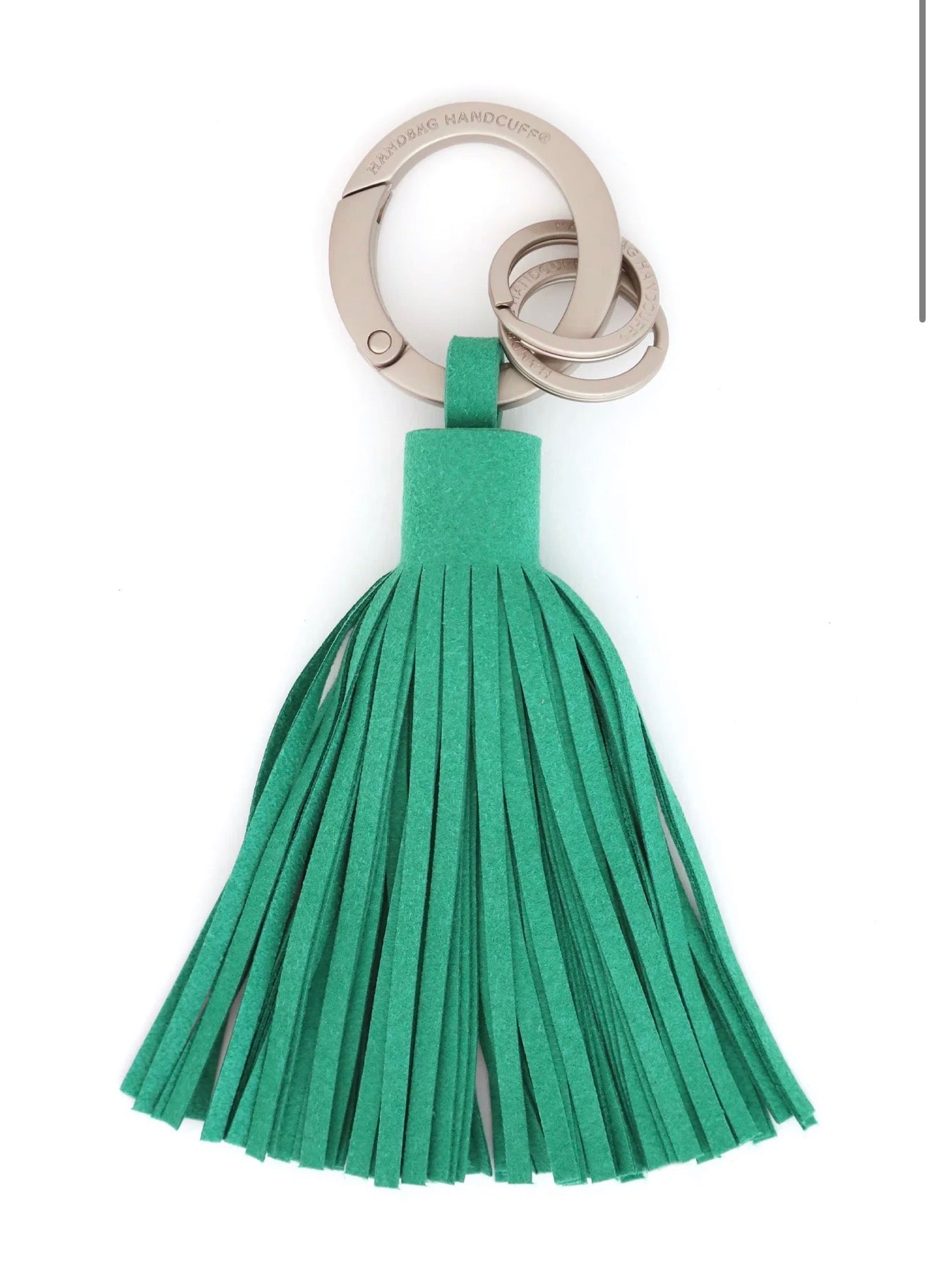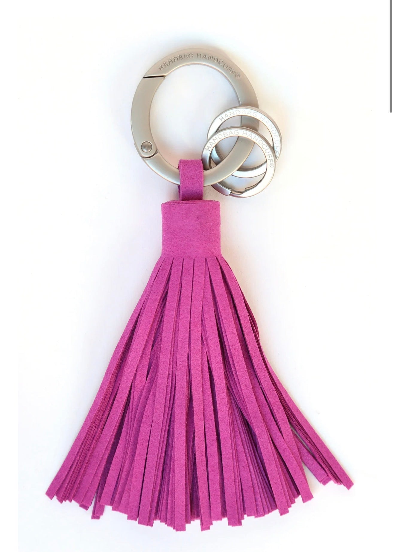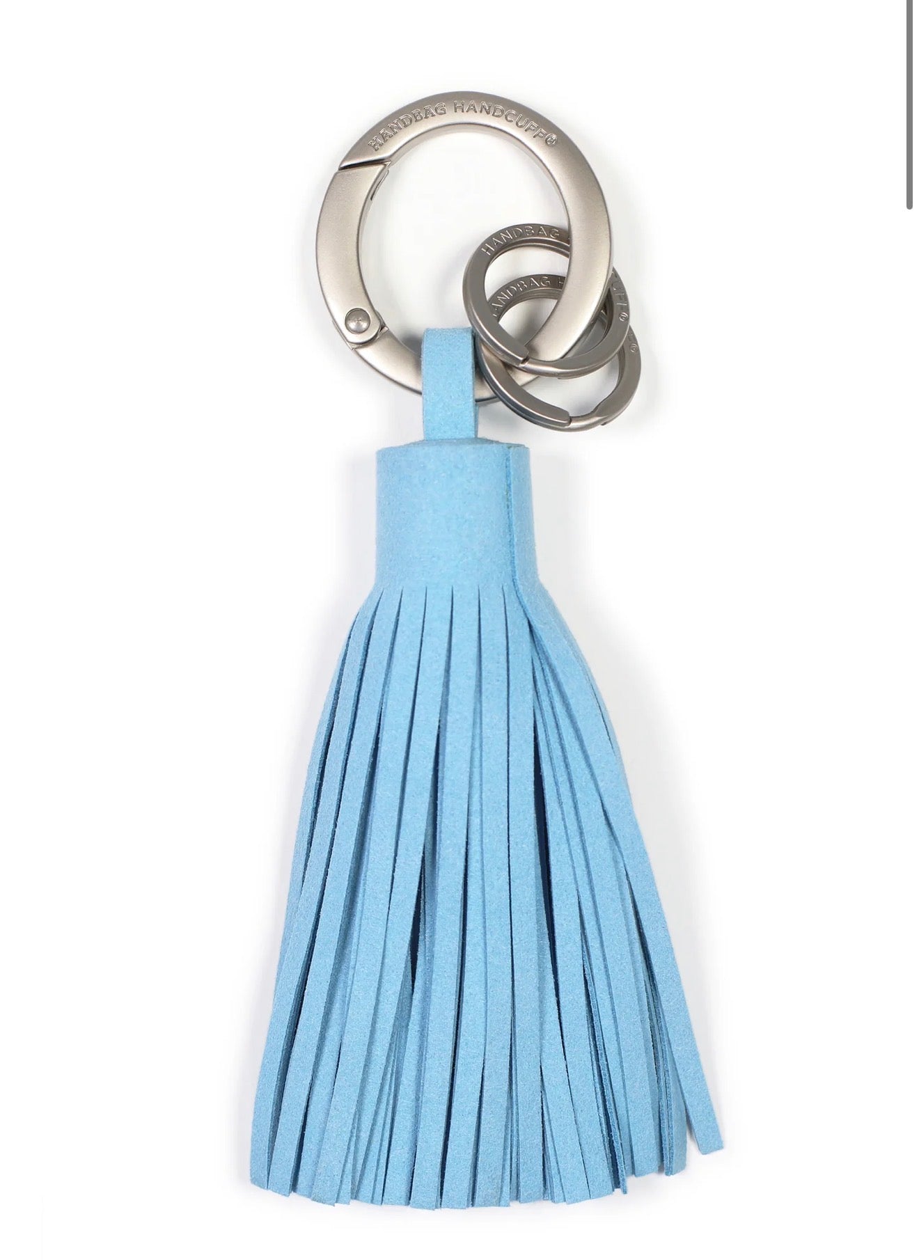 The security of our patented Handbag Handcuff carabiner meets the luxury of a classic tassel key chain. Appointed with two signature split rings to keep your house and car keys separate. Our tassel key chain affords you the freedom to 'cuff your keys anywhere for convenience and easy retrieval. Or simply choose to attach the decorative tassel and easily update your handbag with this chic embellishment. Simply packaged with a double-sided hangtag. A must-have for you and an elegant and useful gift for any occasion.