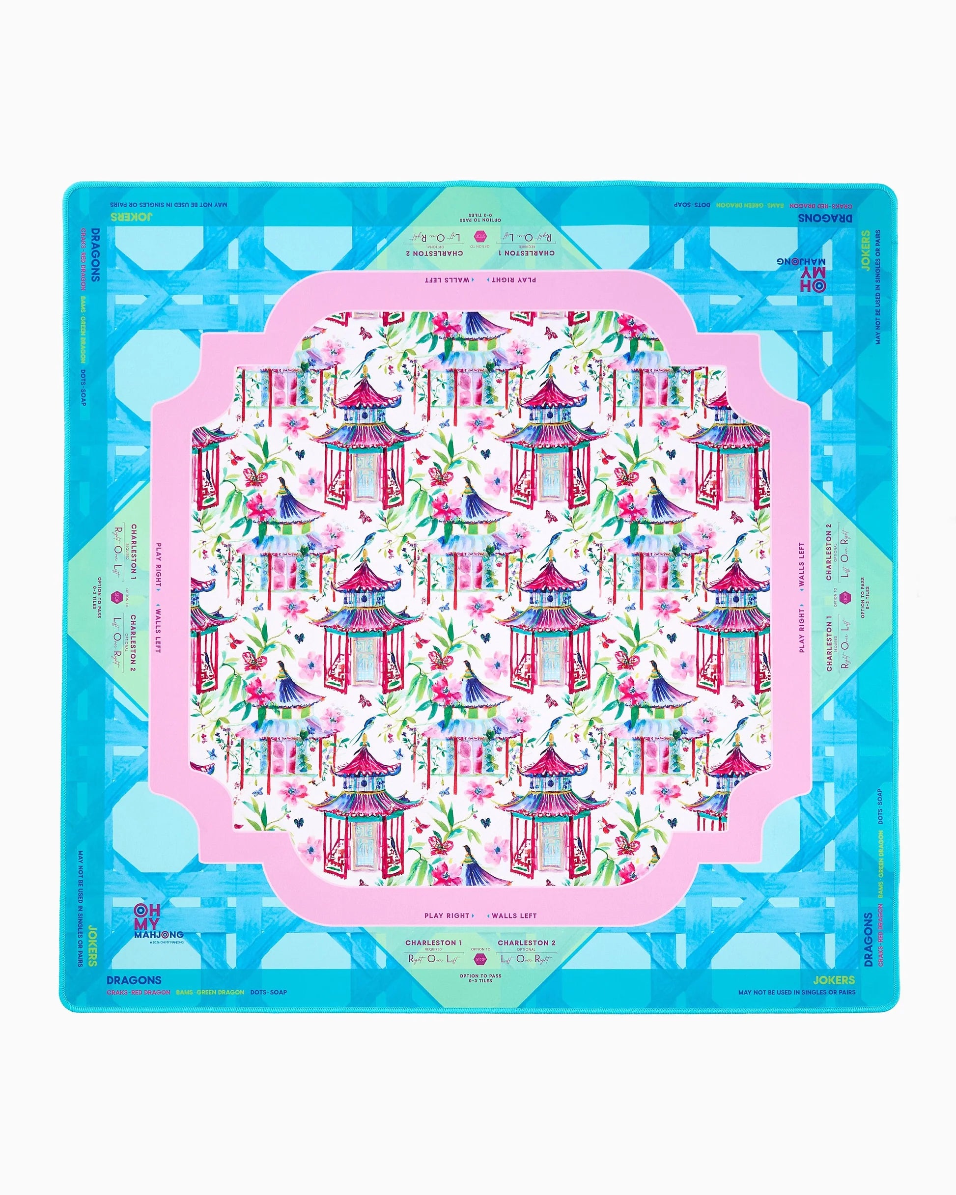Introducing the Lorelei Mat, a vibrant, artfully chic addition to your Mahjong setup, designed for those with a love for playful elegance and globally inspired design. Drenched in fresh tones of sky blue, punchy pinks, and classic greens, this mat brings together a stunning geometric pattern accented by charming pagodas.
