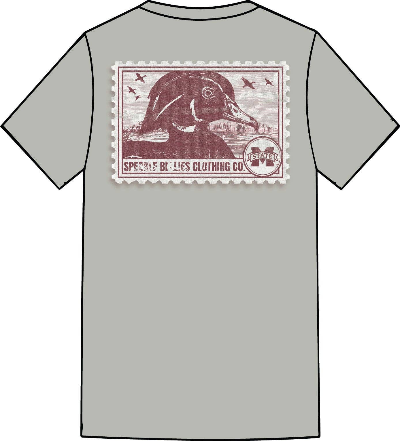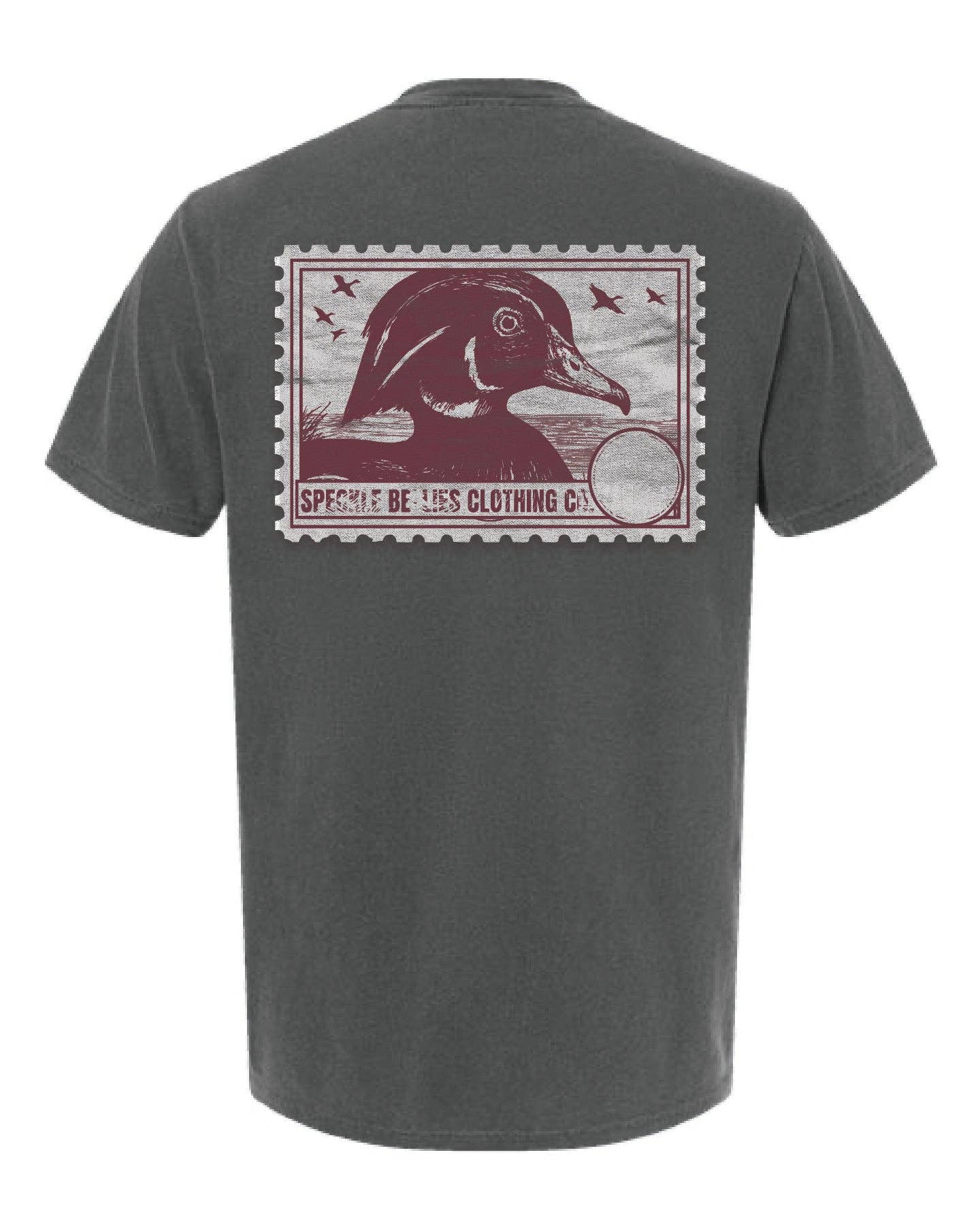 Enjoy our State Duck Stamp T-shirt, a product of Speckle Bellies Clothing Company. This screen-printed tee is designed for adventurous men who love the outdoors. As a family-owned business from Mississippi, we promote what our Father has created for us to enjoy. This shirt is a reminder that God is for you, offering comfort and a hopeful future. Share our love for family and the outdoors with our apparel!