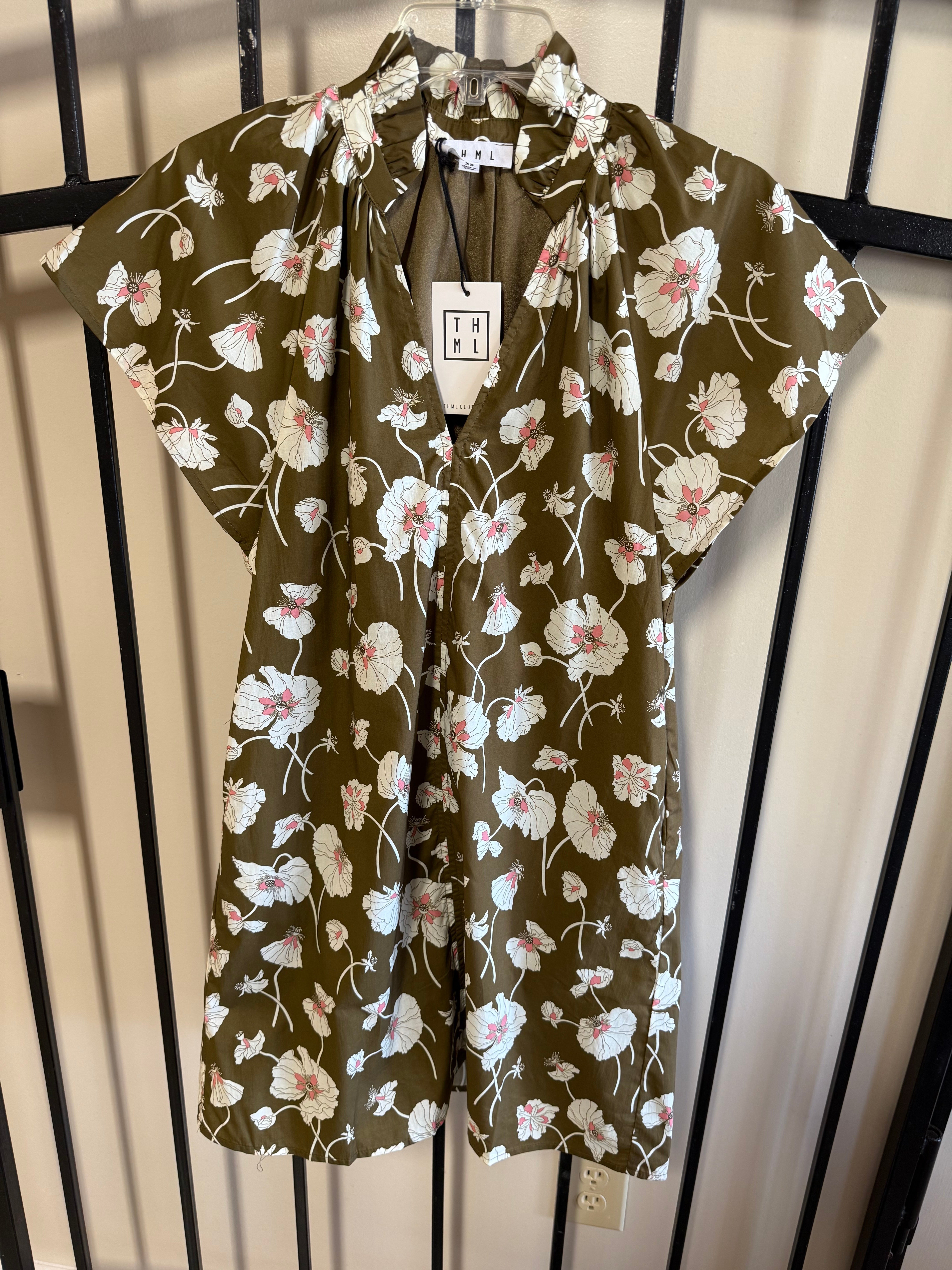 Say hello to effortless charm with the THML Olive Floral Dress — a floral dream that transitions seamlessly from workdays to weekends. This lightweight dress features a rich olive background adorned with soft ivory and blush blooms, creating the perfect balance of earthy elegance and feminine flair.