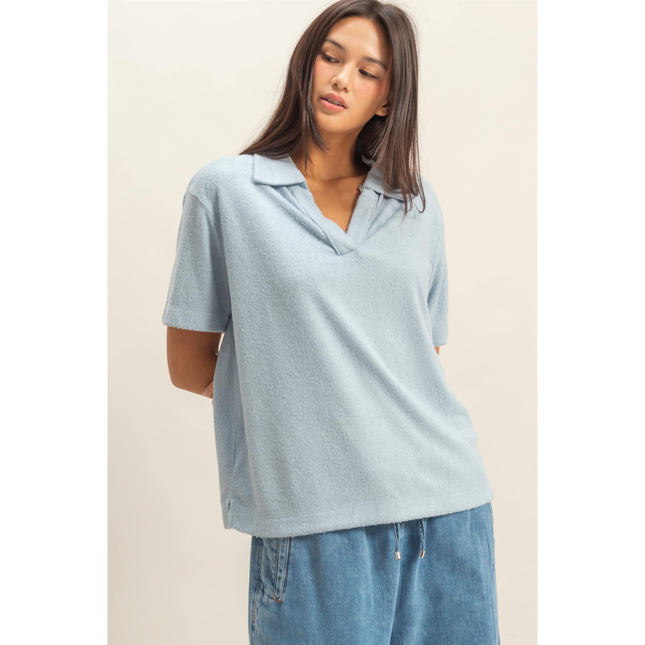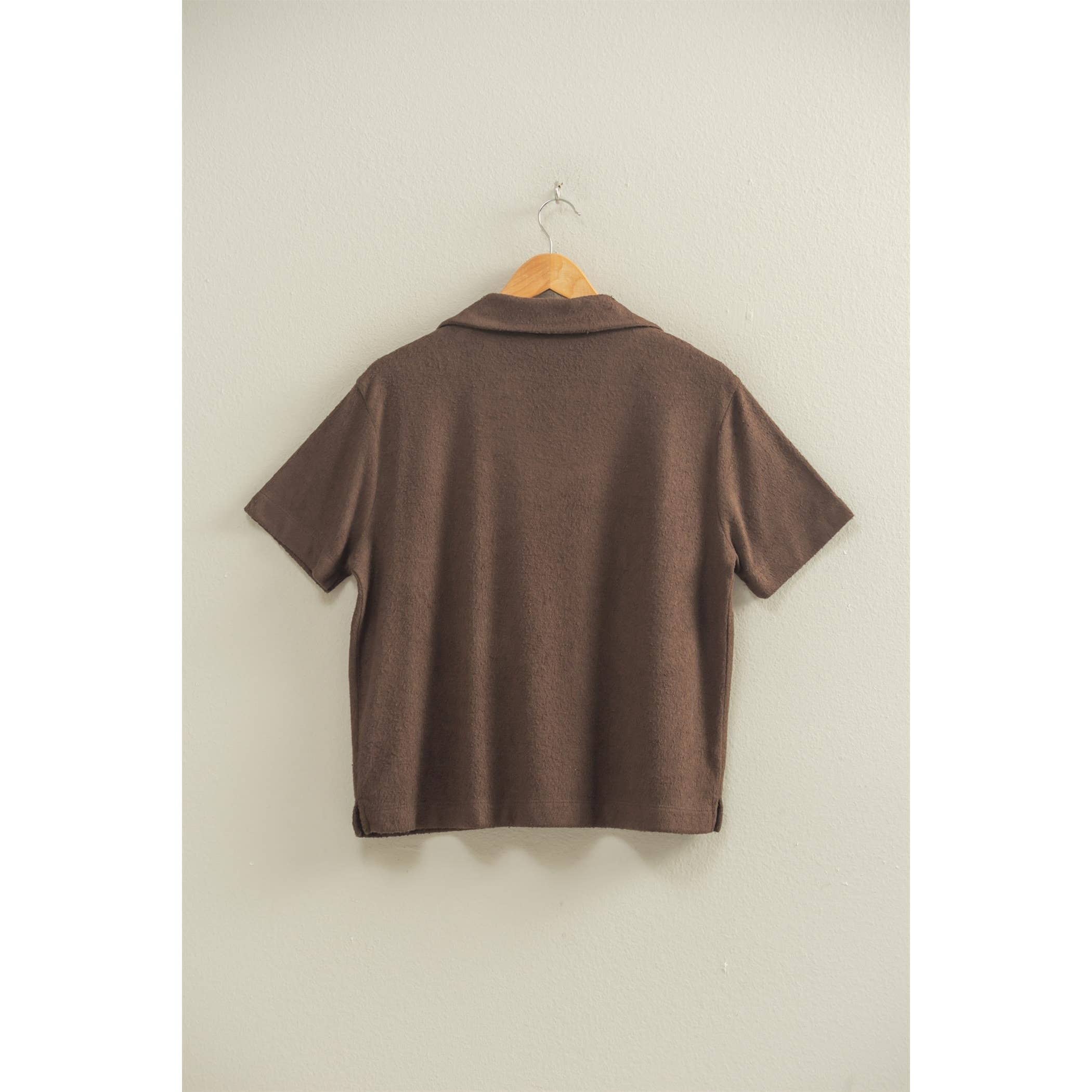 A Collared Neckline And Short Sleeves, This Top Will Keep You Warm Throughout The Season Without Compromising Style. Slightly Loose Fit Bodice Finishes Off The Look, Lending You A Chic Appearance. 82% Rayon / 18% Polyester